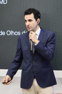 Já no intervalo da tarde, o convidado foi Celso Morita, que abordou o tema “Inteligência artificial: o mundo já mudou, a oftalmologia também precisa mudar”. Em sua fala, reforçou que a inteligência artificial já está transformando a prática médica e que a oftalmologia deve acompanhar essa evolução. Como conclusão, destacou: “A inteligência artificial simplifica a prática médica, entregando mais para o desfecho clínico do paciente”.